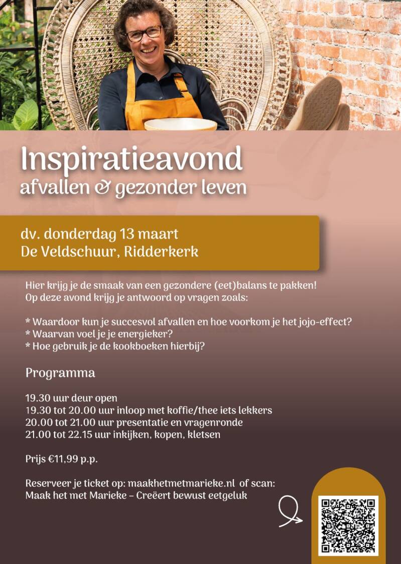 Let op: Deze inspiratieavond biedt een andere presentatie dan die op het kookboekevent of op de vrouwenvereniging. Tijdens deze avond duiken we dieper in de theorie om af te vallen en delen we volop tips voor een gezonder leven.