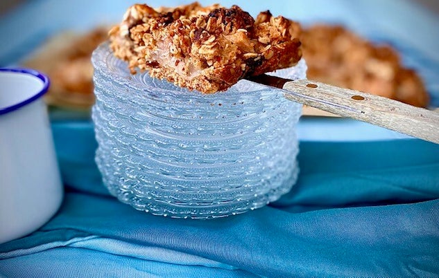 Bak de de kruimelplaattaart in 45 min. bruin en knapperig.