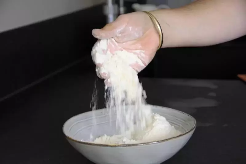 Voeg het toe aan het yoghurtmengsel en meng met de keukenmachine of mixer snel tot een samenhangende deegbal.