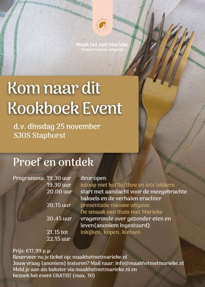 Met aandacht voor baksels van lezers en de verhalen erachter, de presentatie van het nieuwe boek De smaak van thuis met Marieke en een interessante vragenronde.